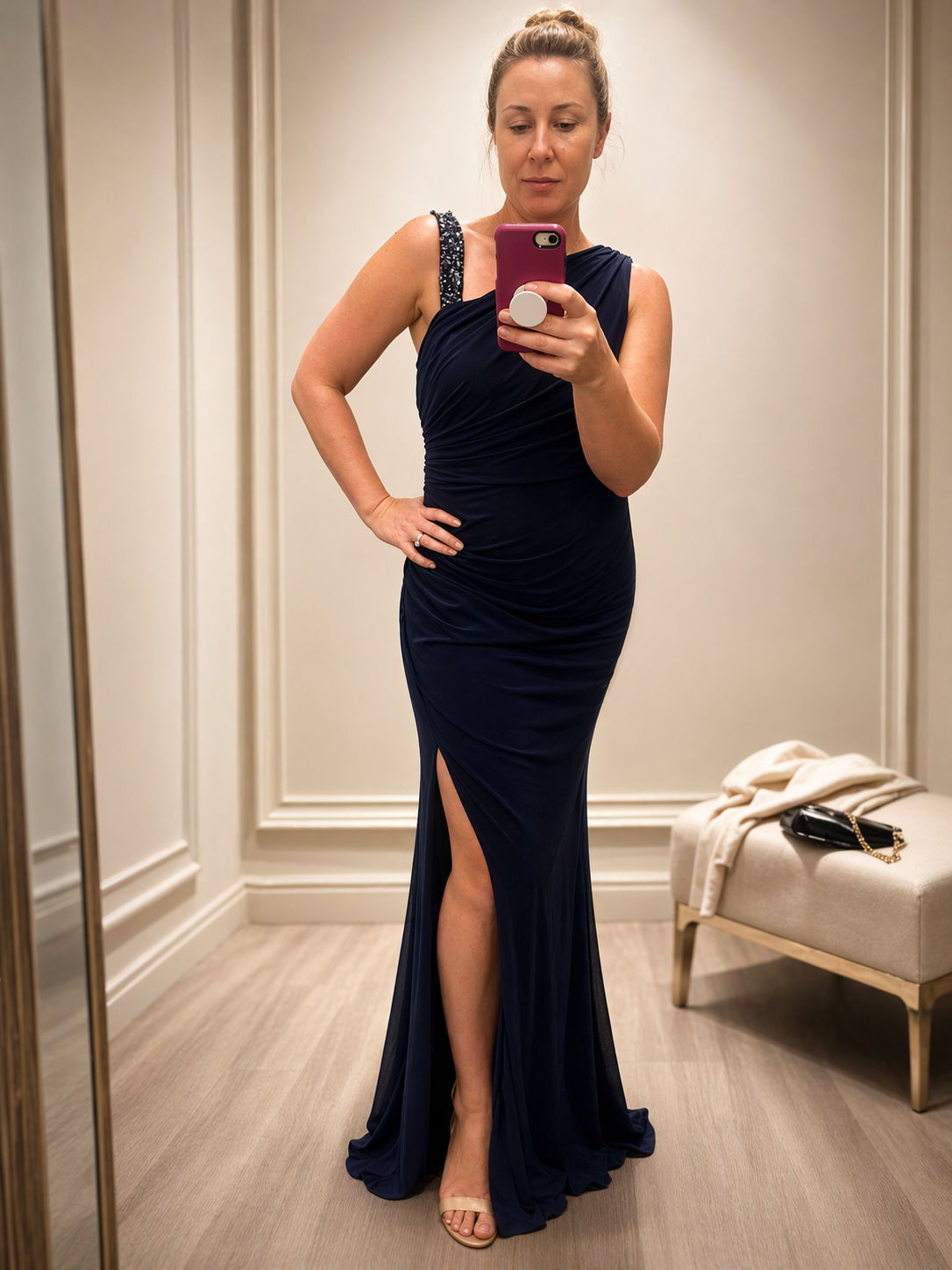 She takes that garment and makes it yours — fitted to your body, your posture, your moment. That is not a service. That is an art form.